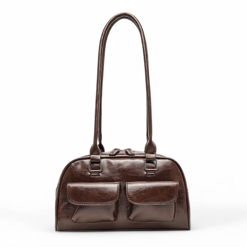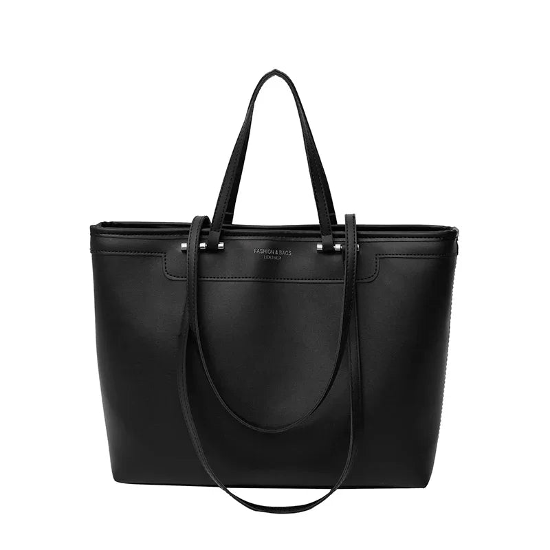 PLYMONIE - Large Capacity Simple Grained Leather Hand Bag