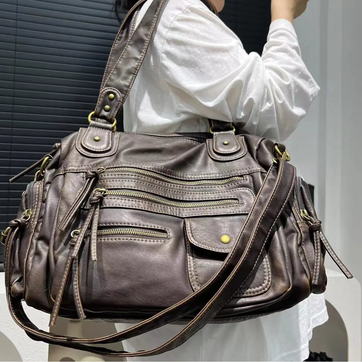 LILIA - Sac à Main en Cuir Vintage Multi-poches